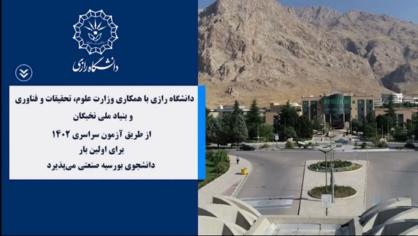 دانشگاه رازی با همکاری وزارت علوم و بنیاد ملی نخبگان از طریق آزمون سراسری ۱۴۰۲ برای اولین بار دانشجوی بورسیه صنعتی میپذیرد.