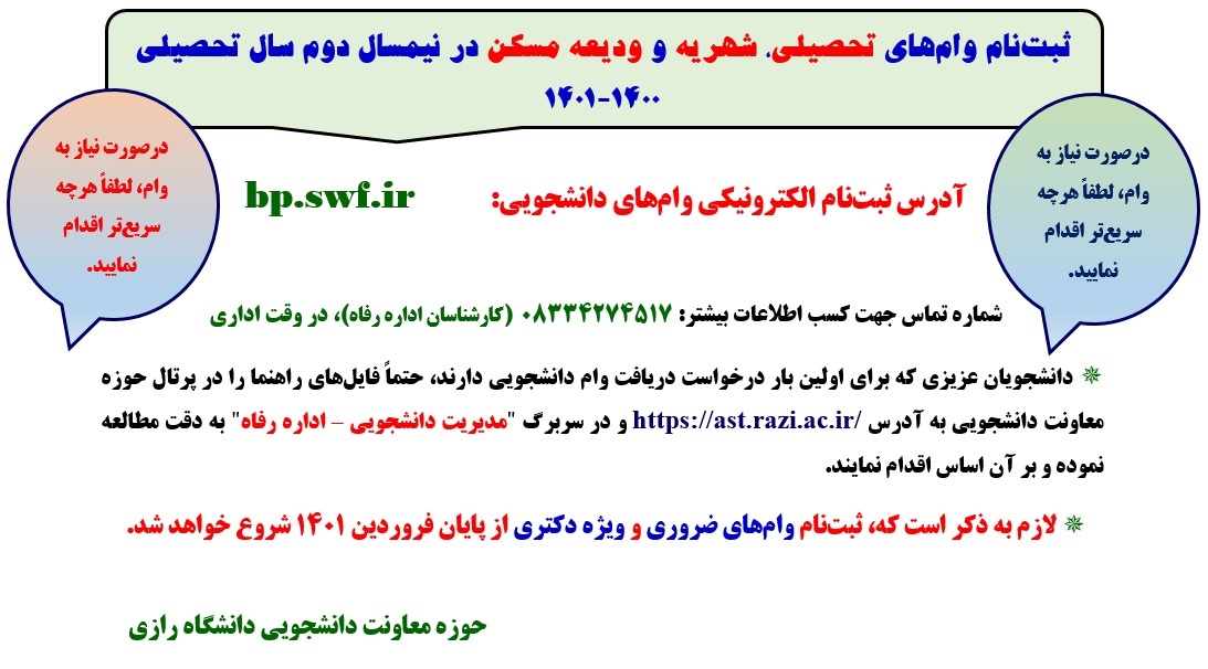 ثبت نام وام های دانشجویی - پرتال اصلی دانشگاه رازی