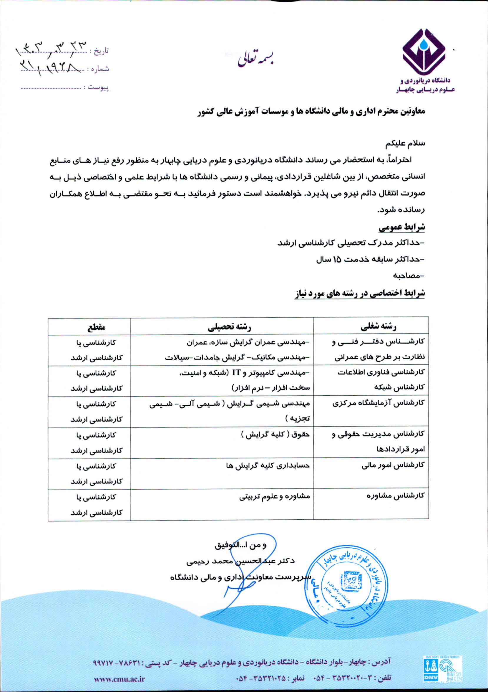 جذب نیرو در دانشگاه دریانوردی و علوم دریایی چابهار - پرتال اصلی دانشگاه رازی
