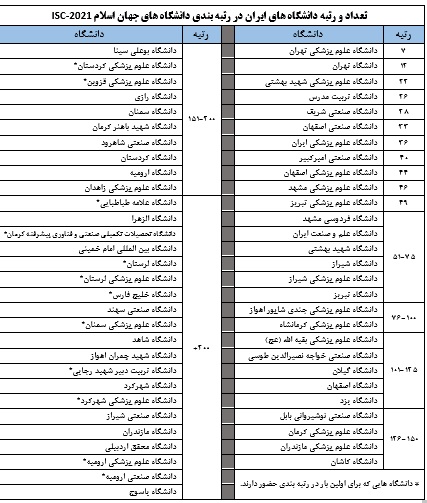 وضعیت رتبه دانشگاههای کشور در رتبهبندی دانشگاههای جهان اسلام برگرفته از پورتال (ISC)