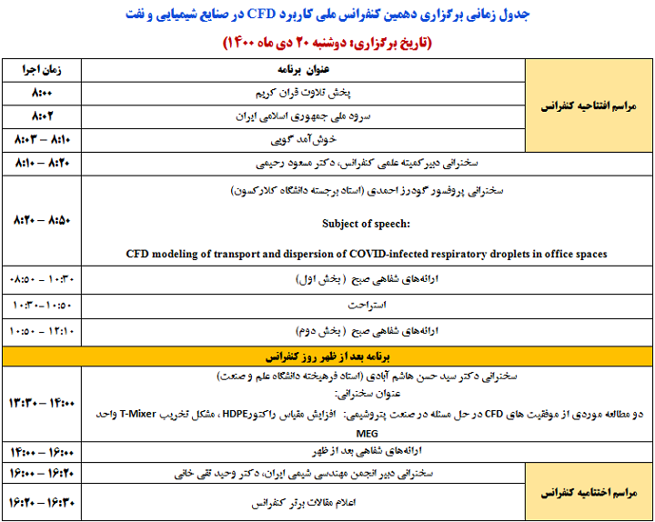 اطلاعات بیشتر در سایت کنفرانس به نشانی: cfd10.razi.ac.ir