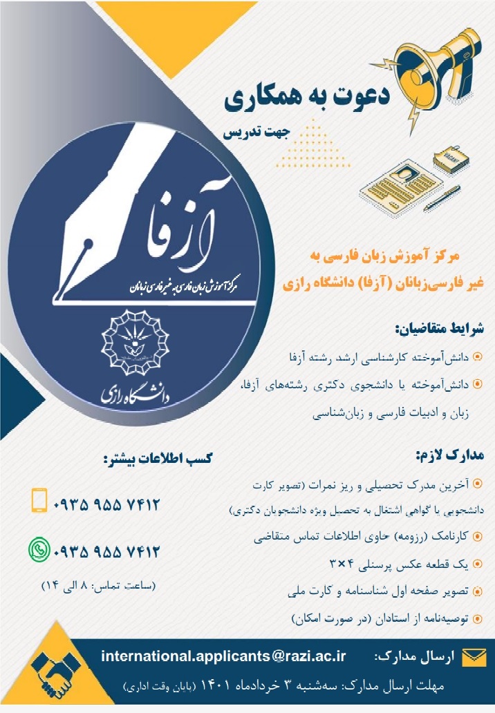 دعوت به همکاری جهت تدریس آزفا (آموزش زبان فارسی) - پرتال اصلی دانشگاه رازی