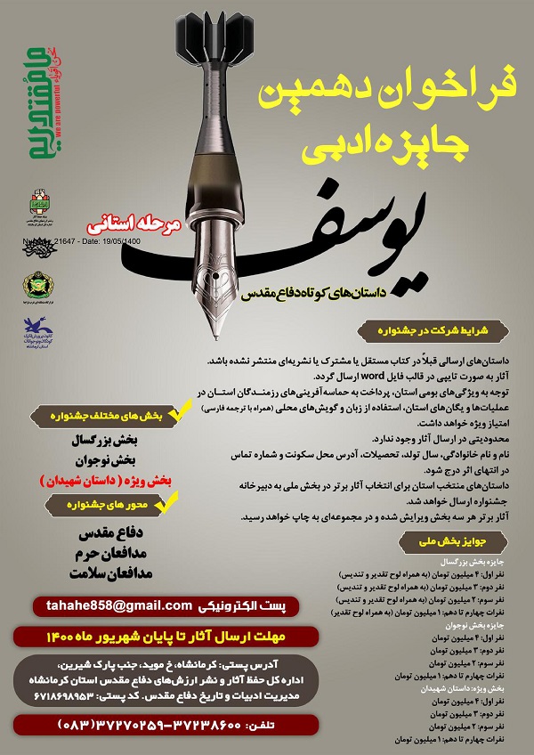 دهمین جایزه ادبی یوسف و بیست وسومین کنگره ملی شعر دفاع مقدس - پرتال اصلی دانشگاه رازی