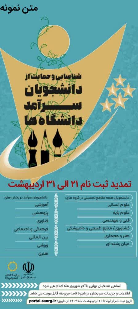 تمدید ثبت نام از ۲۱ الی ۳۱ اردیبهشت ماه ۱۴۰۴