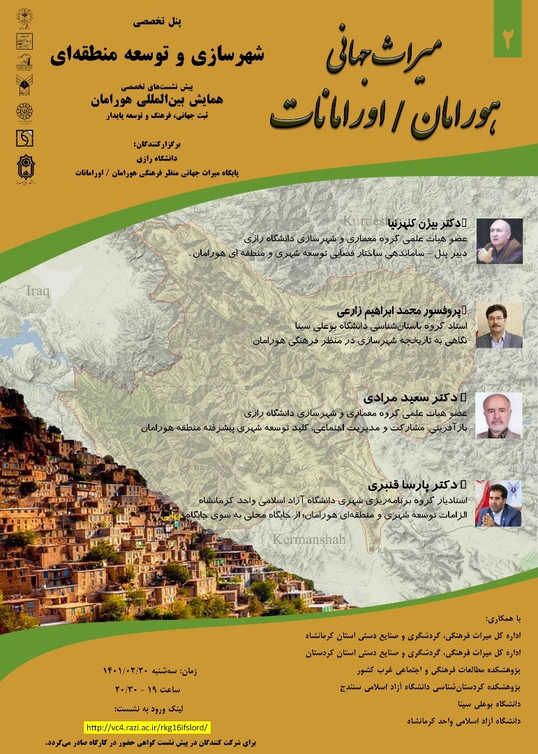 دومین پیش نشست مجازی همایش بینالمللی هورامان؛ ثبت جهانی، فرهنگ و توسعه پایدار با عنوان شهرسازی و توسعه منطقهای برگزار میگردد.