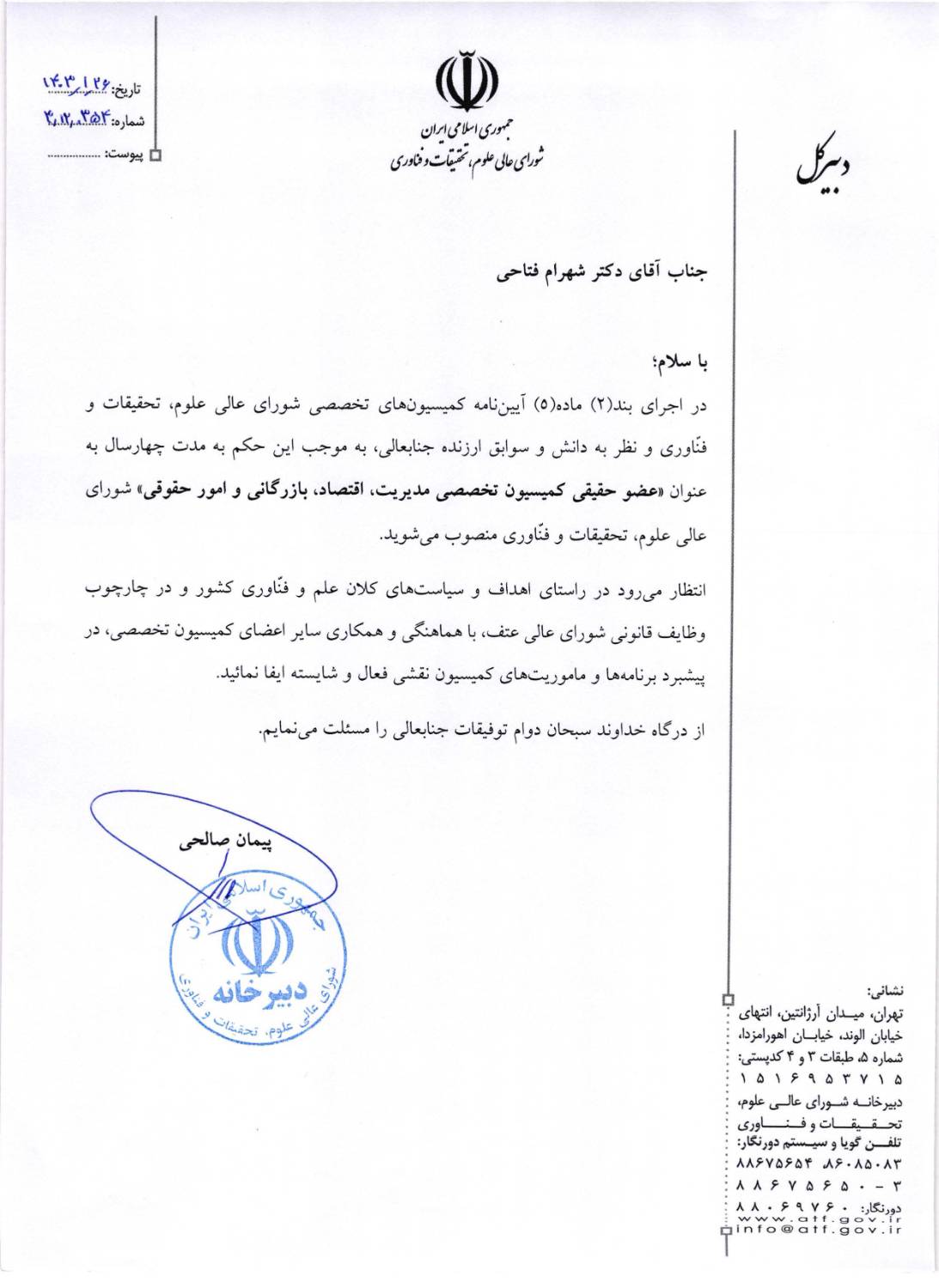 دکتر شهرام فتاحی عضو کمیسیون تخصصی مدیریت، اقتصاد، بازرگانی و امور حقوقی شورای عالی وزارت علوم شد - پرتال اصلی دانشگاه رازی