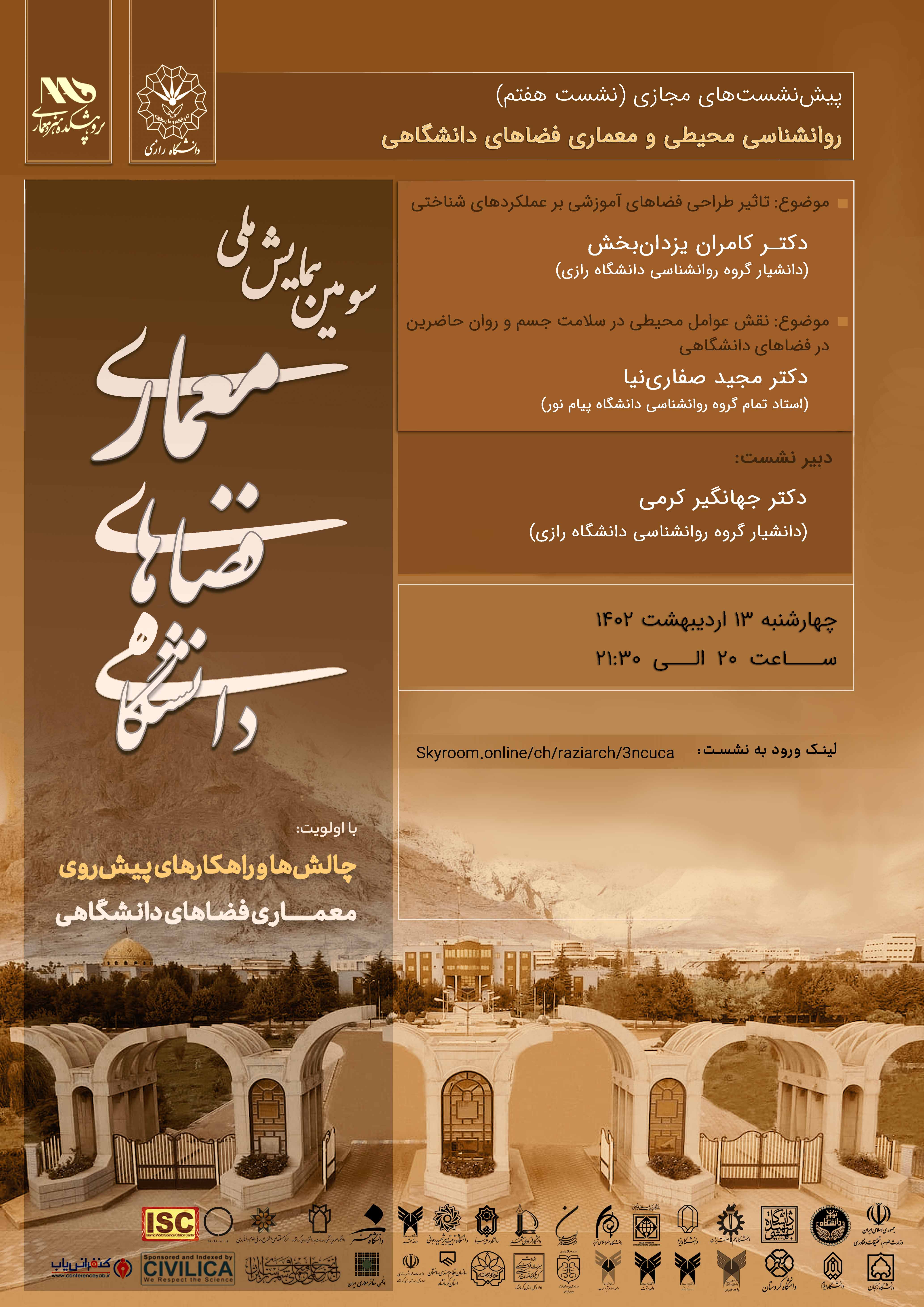 هفتمین پیش نشست همایش ملی معماری فضاهای دانشگاهی با موضوع روانشناسی محیطی و معماری فضاهای دانشگاهی در دانشگاه رازی برگزار می شود.