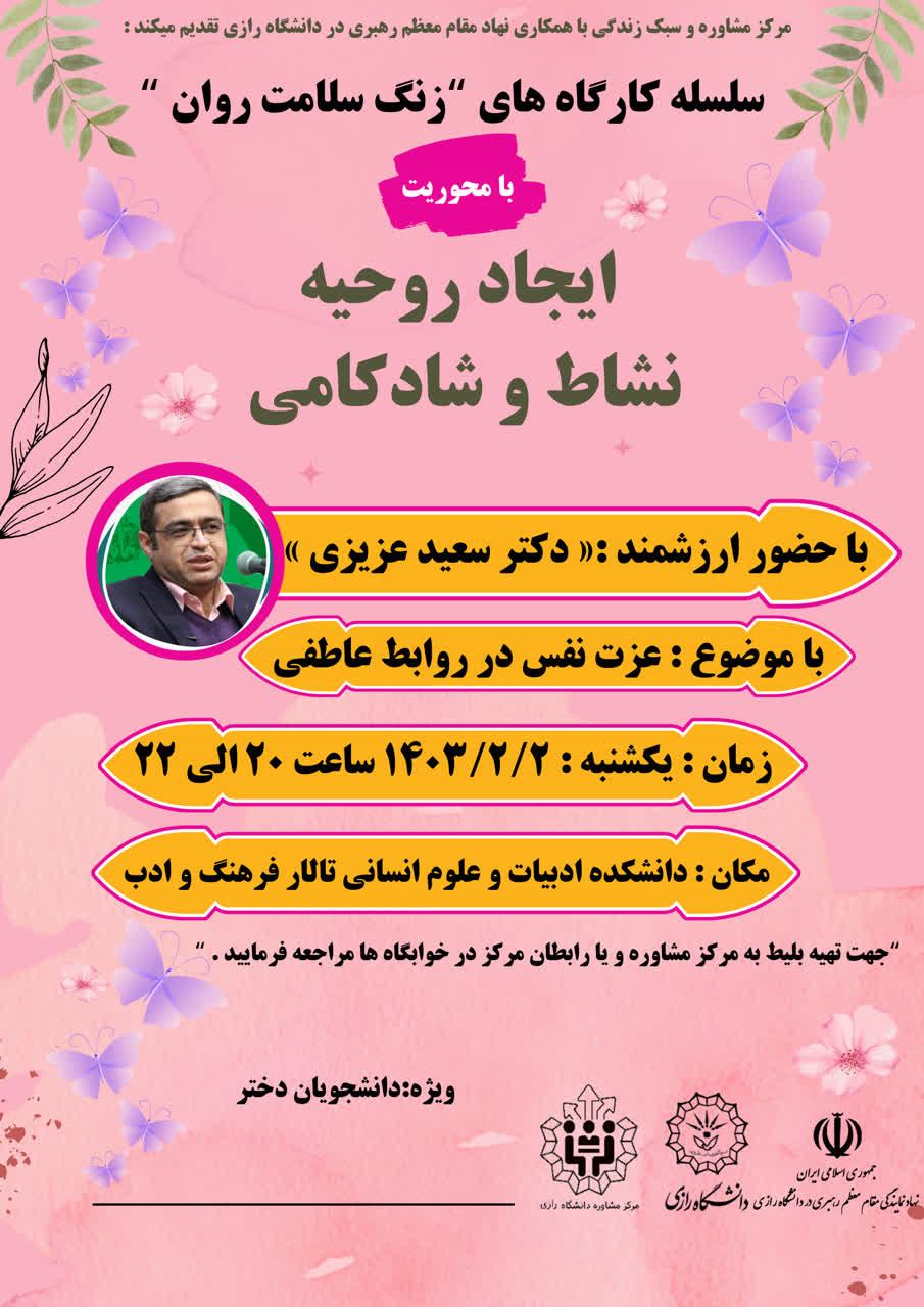 مرکز مشاوره و سبک زندگی با همکاری نهاد مقام معظم رهبری در دانشگاه رازی تقدیم میکند: