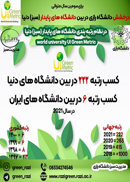 دانشگاه رازی کرمانشاه بار دیگر توانست در بین دانشگاههای پایدار (سبز) دنیا در نظام رتبهبندی جهانی گرین متریک قرار گیرد.