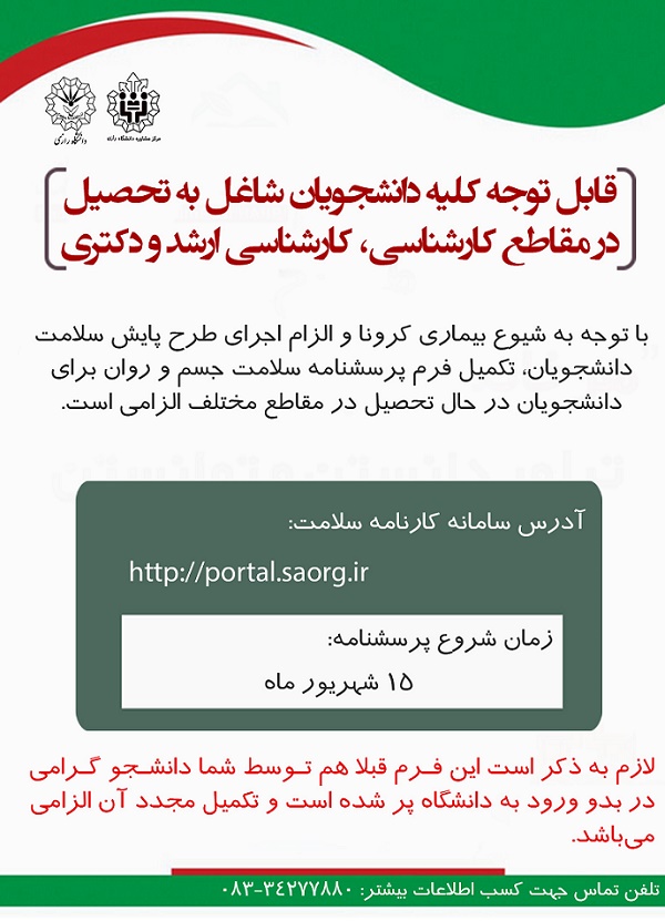 طرح پایش سلامت روان دانشجویان؛ سال تحصیلی 1401-1400 - پرتال اصلی دانشگاه رازی
