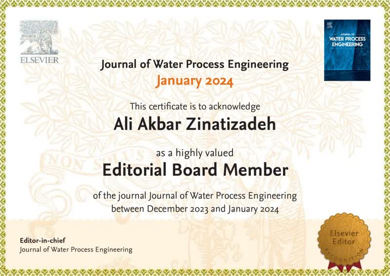 به گزارش روابط عمومی دانشگاه رازی، دکتر علی اکبر زینتیزاده، عضو هیأت علمی گروه شیمی کاربردی دانشگاه رازی و استاد نمونه کشور عضو هیأت تحریریه نشریه معتبر: «Journal of water process engineering» شد.