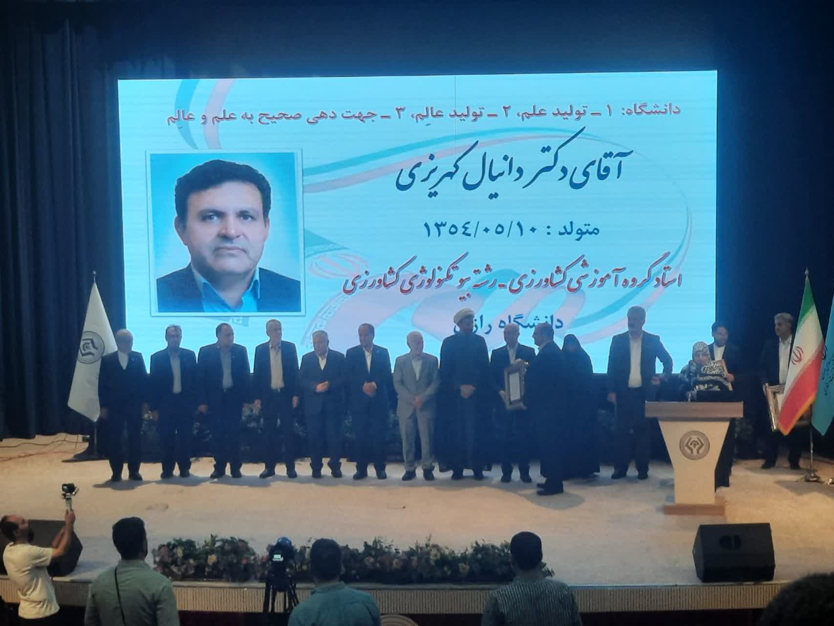 بر اساس این گزارش، از دکتر دانیال کهریزی، استاد رشته بیوتکنولوژی کشاورزی و عضو هیأت علمی دانشگاه رازی از سوی وزیر علوم، تحقیقات و فناوری به عنوان استاد برگزیده کشوری تقدیر شد.