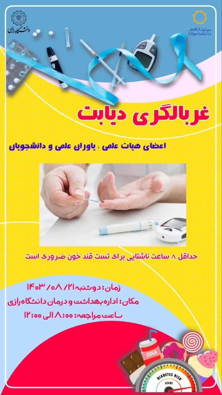 غربالگری دیابت ویژه اعضای هیأت علمی، یاوران علمی و دانشجویان دانشگاه رازی