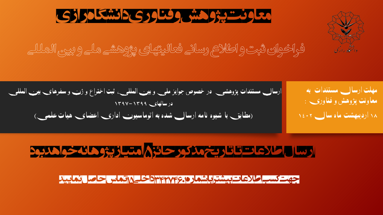 فراخوان ثبت و اطلاع رسانی فعالیتهای پژوهشی - پرتال اصلی دانشگاه رازی