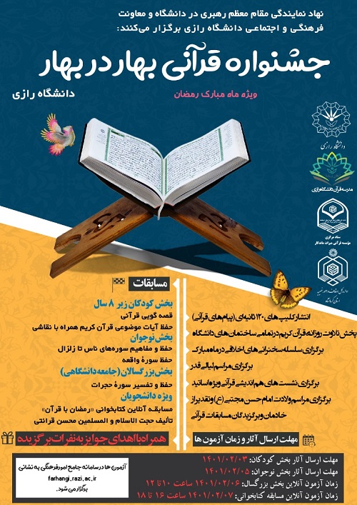 فراخوان جشنواره قرآنی «بهار در بهار» ویژه خانواده دانشگاه رازی - پرتال اصلی دانشگاه رازی