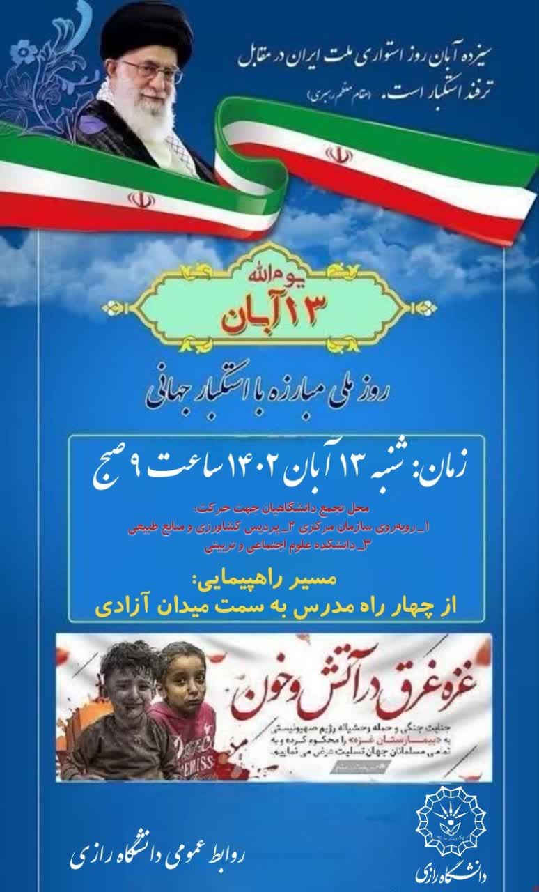 فراخوان حضور جامعه بزرگ دانشگاه رازی در راهپیمایی یومالله 13 آبان - پرتال اصلی دانشگاه رازی