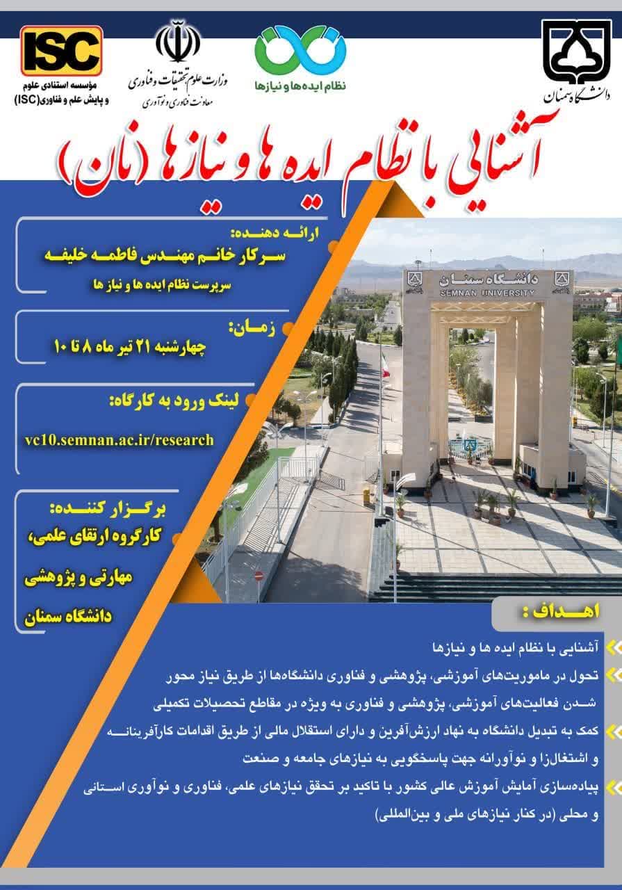 ارائه دهنده: مهندس فاطمه خليفه (سرپرست نظام ايدهها و نيازها (نان) مؤسسه استنادي و پايش علم و فناوري جهان اسلام ISC)