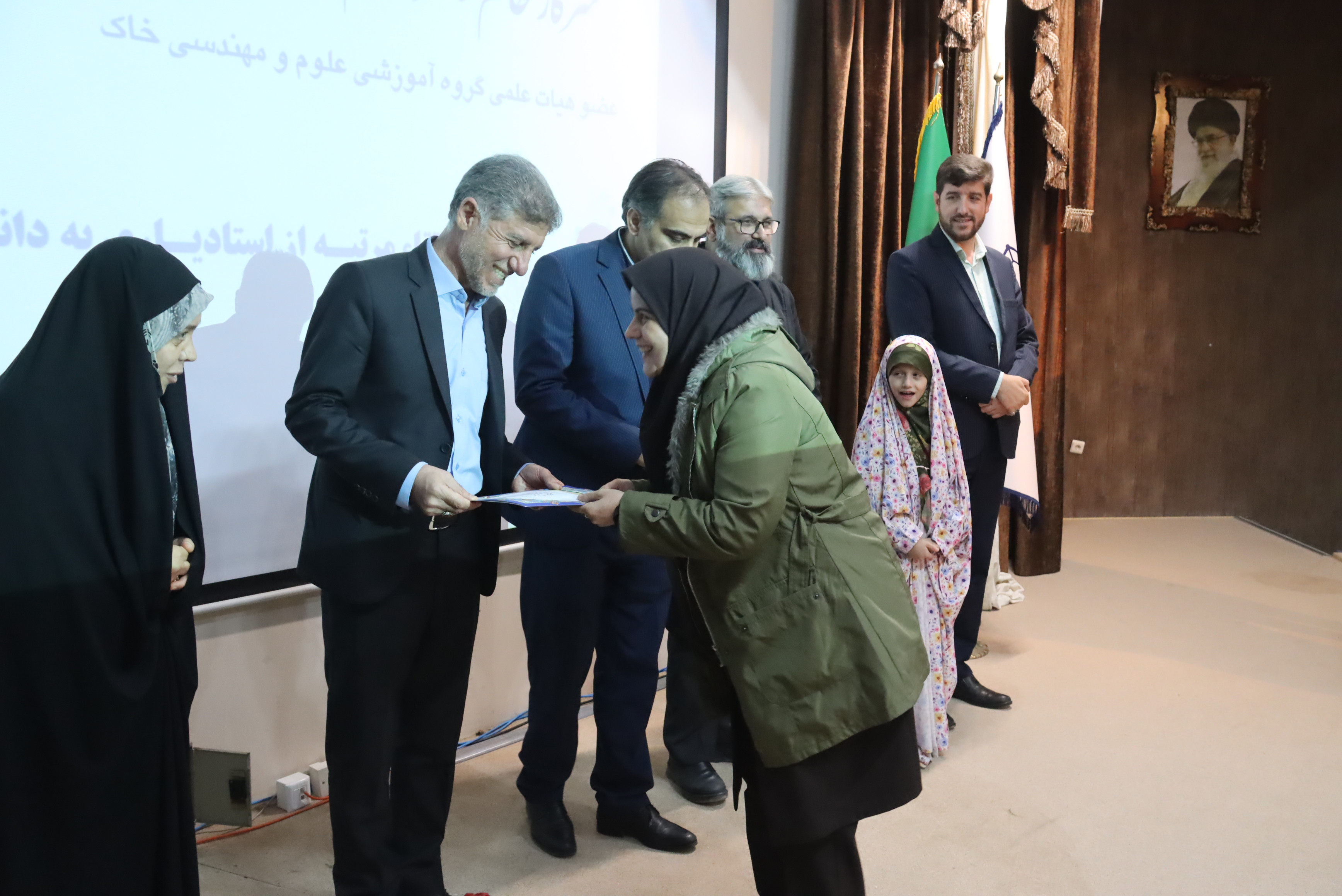 در این مراسم، از مادر گرامی شهید بسیجی مدافع حرم و حافظ امنیت، شهید سجاد امیری با حضور ریاست دانشگاه تقدیر شد.