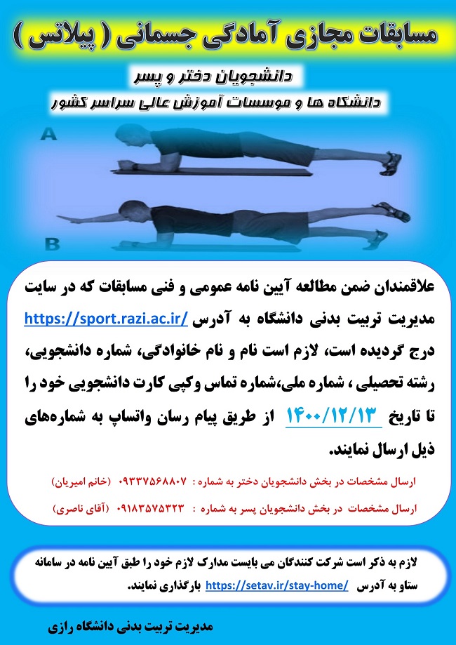 مسابقات آمادگی جسمانی ( پیلاتس) دانشجویان دختر و پسر - پرتال اصلی دانشگاه رازی