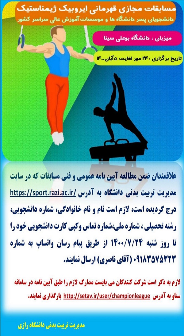 مسابقات مجازی قهرمانی ایروبیک ژیمناستیک ویژه دانشجویان - پرتال اصلی دانشگاه رازی