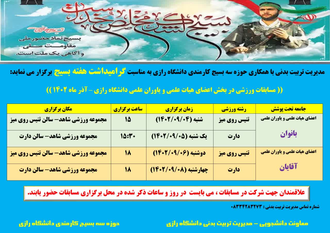 مسابقات ورزشی ویژه اعضای هیأت علمی و یاوران علمی دانشگاه رازی (آذرماه 1402)