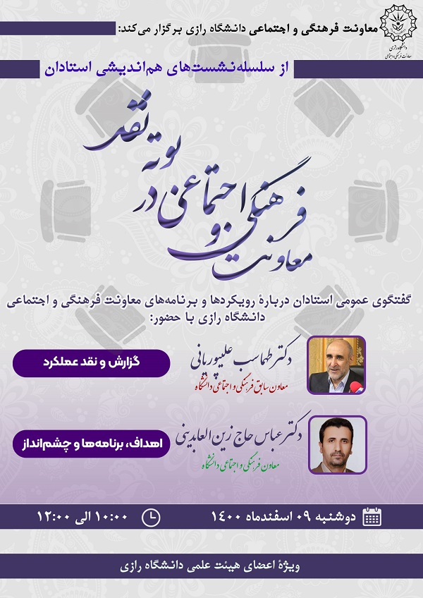 گفتوگوی عمومی استادان دانشگاه رازی دربارۀ رویکردها و برنامههای معاونت فرهنگی و اجتماعی دانشگاه