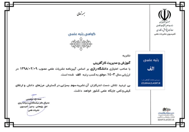 نشریه علمی "آموزش و مدیریت کارآفرینی" موفق به اخذ رتبه "الف" شد - پرتال اصلی دانشگاه رازی