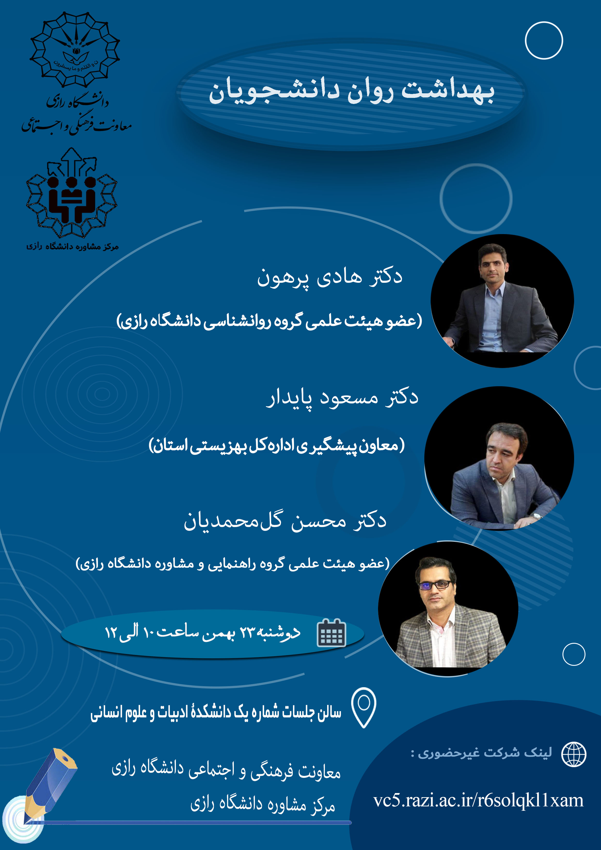 برگزارکننده: معاونت فرهنگی و اجتماعی و مرکز مشاورۀ دانشگاه رازی