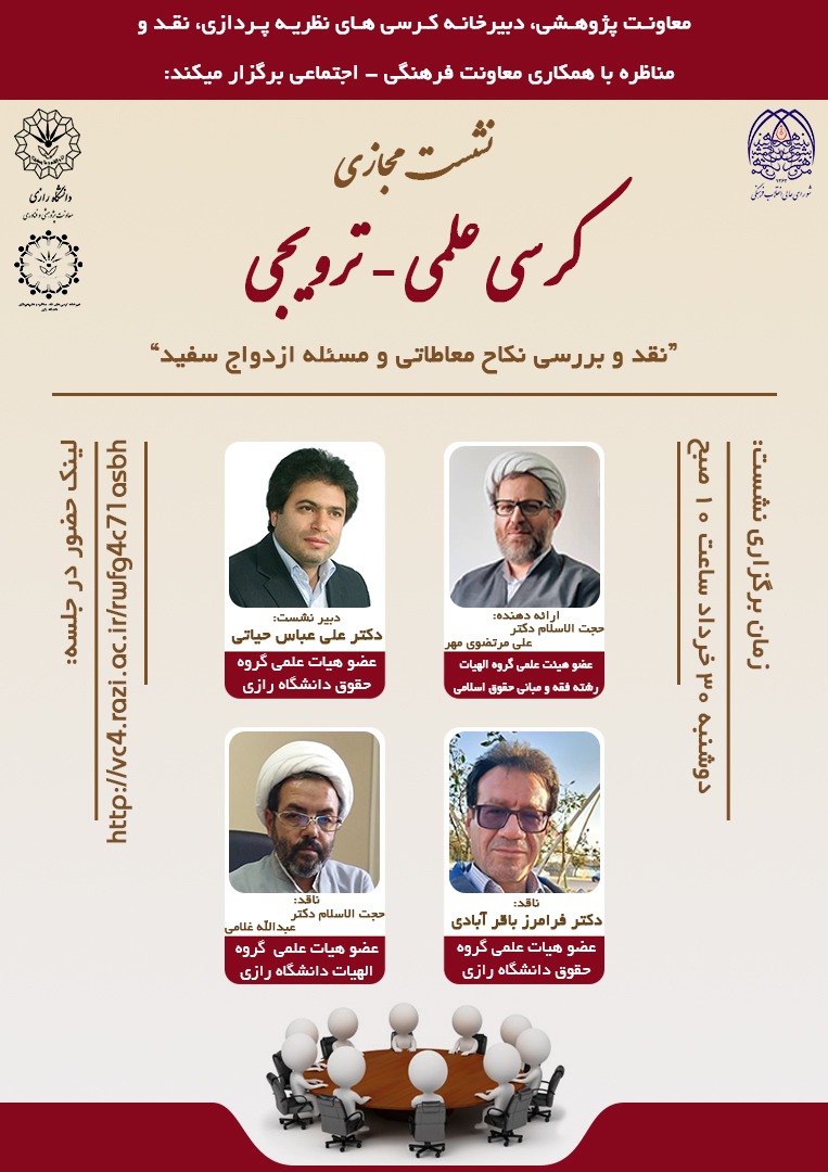 نشست کرسی علمی - ترويجی با عنوان: نقد و بررسی نکاح معاطاتی و مسأله ازدواج سفید - پرتال اصلی دانشگاه رازی