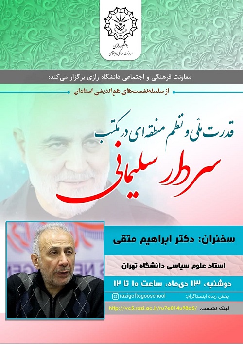 نشست هماندیشی استادان با موضوع «قدرت ملّی و نظم منطقهای در مکتب سردار سلیمانی» + لینک - پرتال اصلی دانشگاه رازی