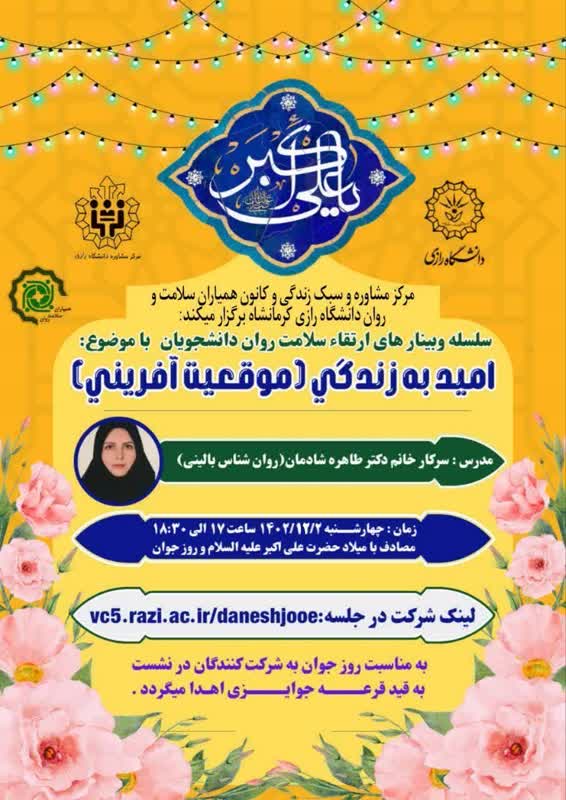 وبینار ارتقاء سلامت روان دانشجویان با موضوع: امید به زندگی + لینک شرکت در وبینار - پرتال اصلی دانشگاه رازی