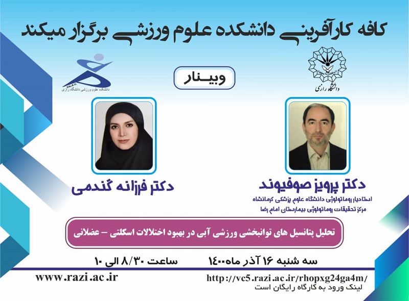 وبینار تحلیل پتانسیلهای توانبخشی ورزشی آبی در بهبود اختلالات اسکلتی - عضلانی - پرتال اصلی دانشگاه رازی