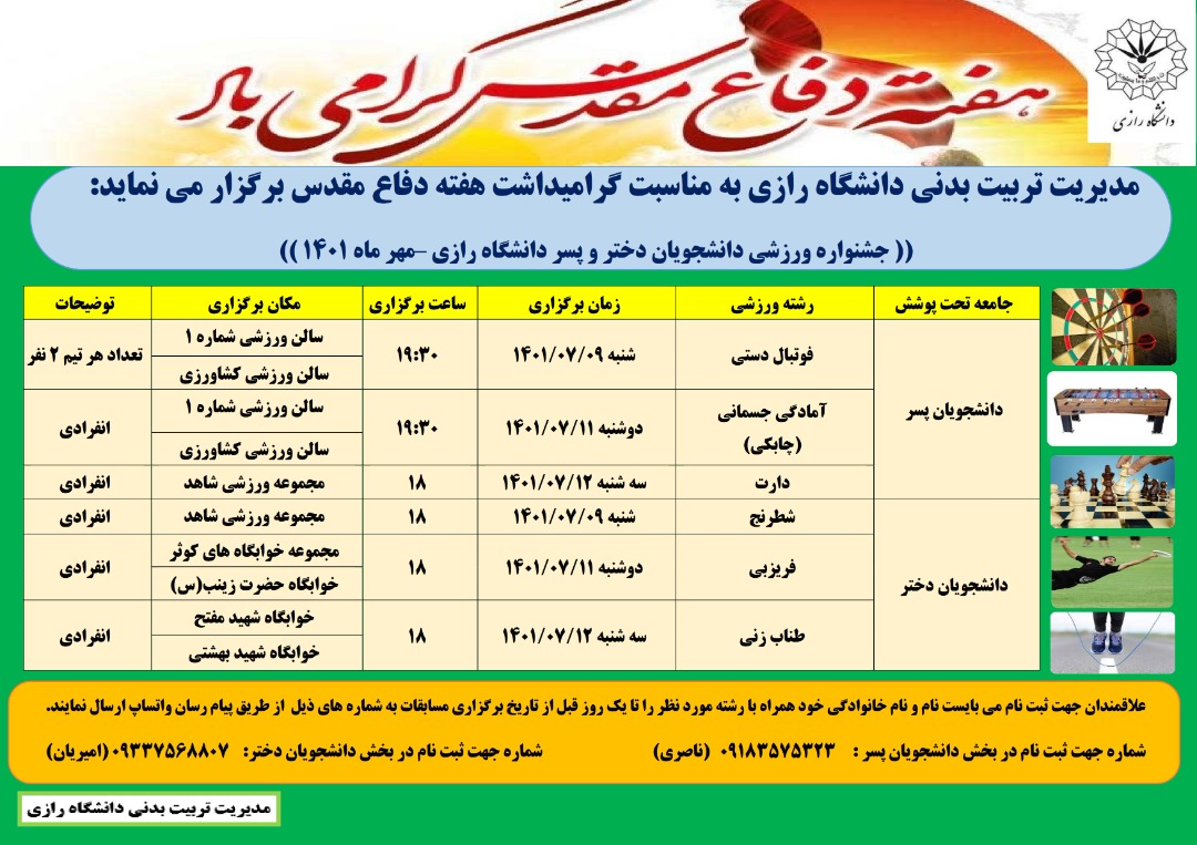 جشنوارههای ورزشی دانشگاه رازی - پرتال اصلی دانشگاه رازی