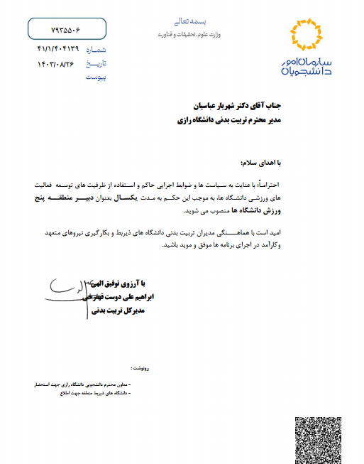 مدیر محترم تربیت بدنی دانشگاه رازی