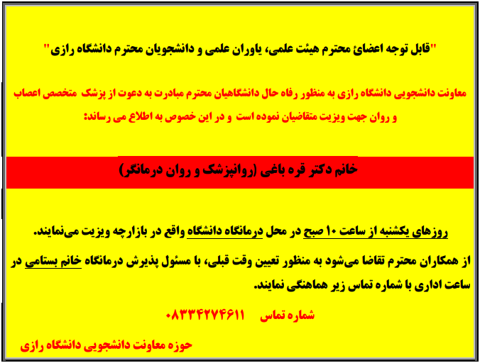 ویزیت دکتر قره باغی، روانپزشک و روان درمانگر - پرتال اصلی دانشگاه رازی