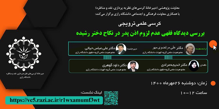 پنجمین کرسی ترویجی: «بررسی دیدگاه فقهی عدم لزوم اذن پدر در نکاح دختر رشیده» - پرتال اصلی دانشگاه رازی