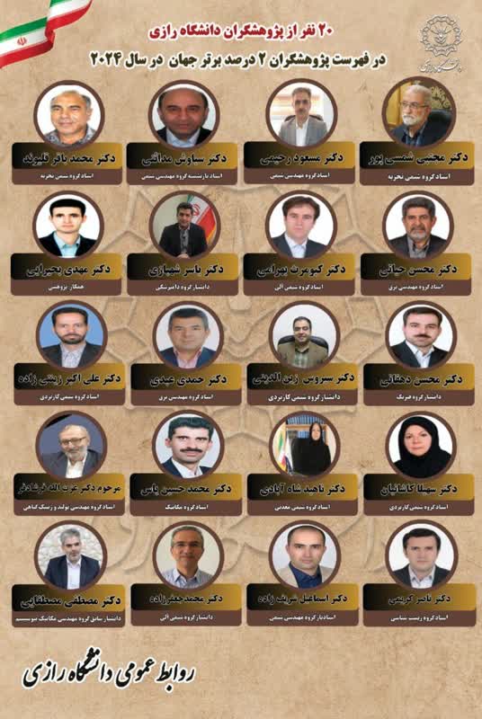 شایان ذکر است؛ 20 نفر از پژوهشگران دانشگاه رازی در لیست پژوهشگران پراستناد دو درصد برتر جهان در سال 2024 قرار گرفتند.