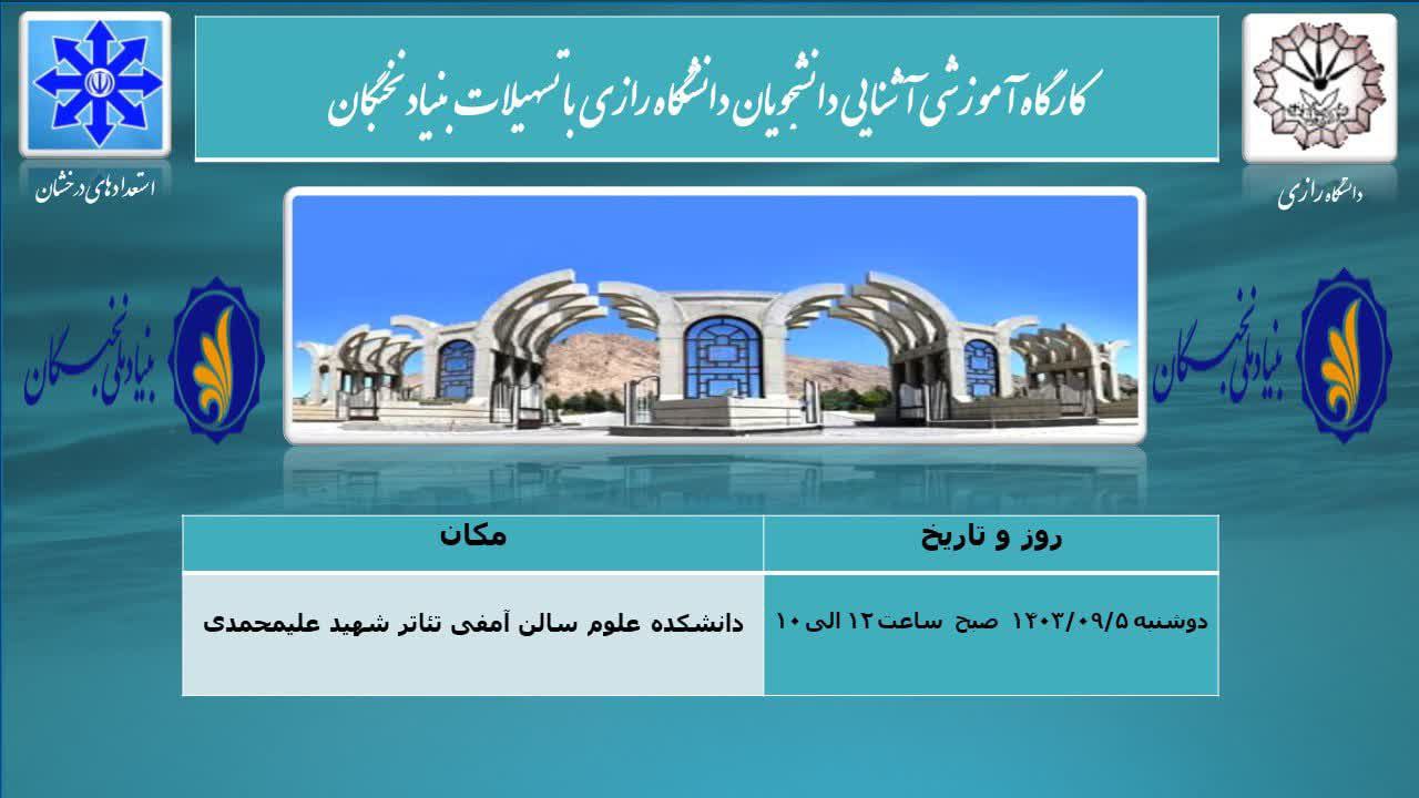 کارگاه آموزشی آشنایی دانشجویان دانشگاه رازی با تسهیلات بنیاد نخبگان برگزار میشود.