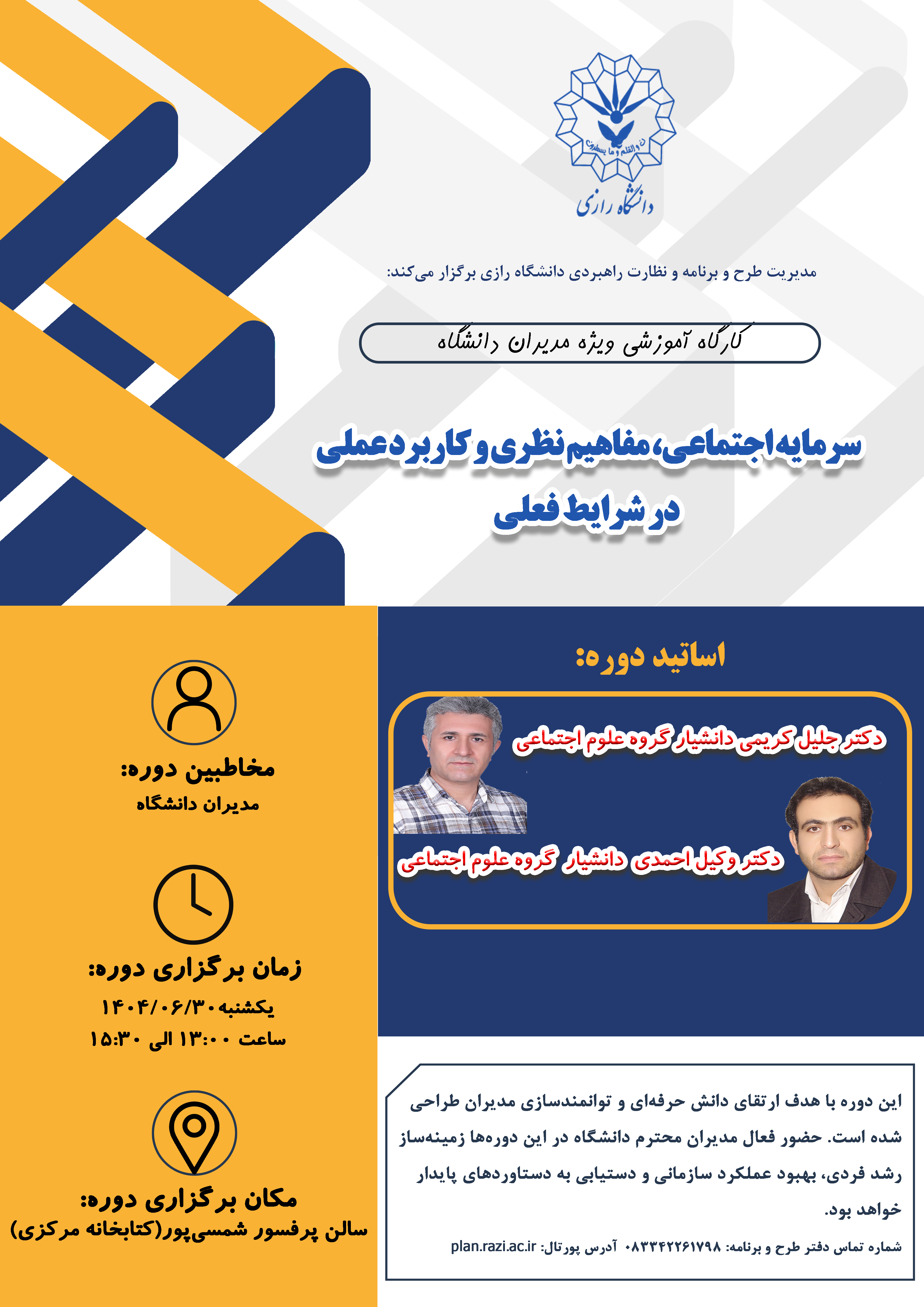 کارگاه آموزشی ویژه مدیران دانشگاه: سرمایه اجتماعی، مفاهیم نظری و کاربرد عملی در شرایط فعلی - پرتال اصلی دانشگاه رازی