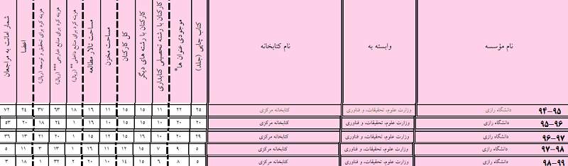 رتبه های کتابخانه مرکزی دانشگاه رازی در سال های 1394 الی 1399