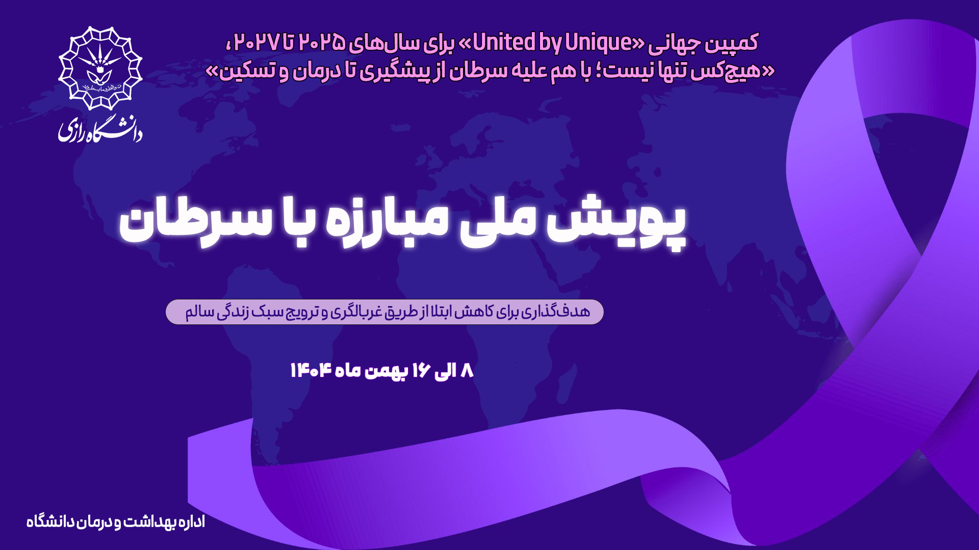 کمپین جهانی «United by Unique» | «هیچکس تنها نیست؛ با هم علیه سرطان از پیشگیری تا درمان و تسکین» - پرتال اصلی دانشگاه رازی