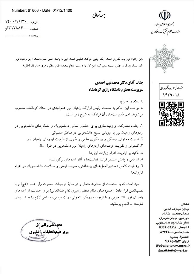 سرپرست محترم دانشگاه رازی کرمانشاه