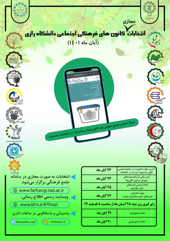 انتخابات مجازی کانون های فرهنگی و هنری در سامانه جامع فرهنگی به نشانی زیر به صورت مجازی برگزار میگردد: