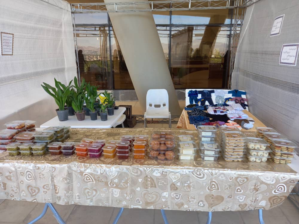 کتاب، ملزومات حجاب، تولیدات دانشجویی (تابلوهای فرش، نقاشی و سیاه قلم، معرق کاری، شمع، نمددوزی، عروسک، گل و گیاه، شیرینی و ترشی، محصولات فودهاب، مانتو و ...)، غذاهای محلی، بازی‌های فکری، طب سنتی و داروهای گیاهی و ...