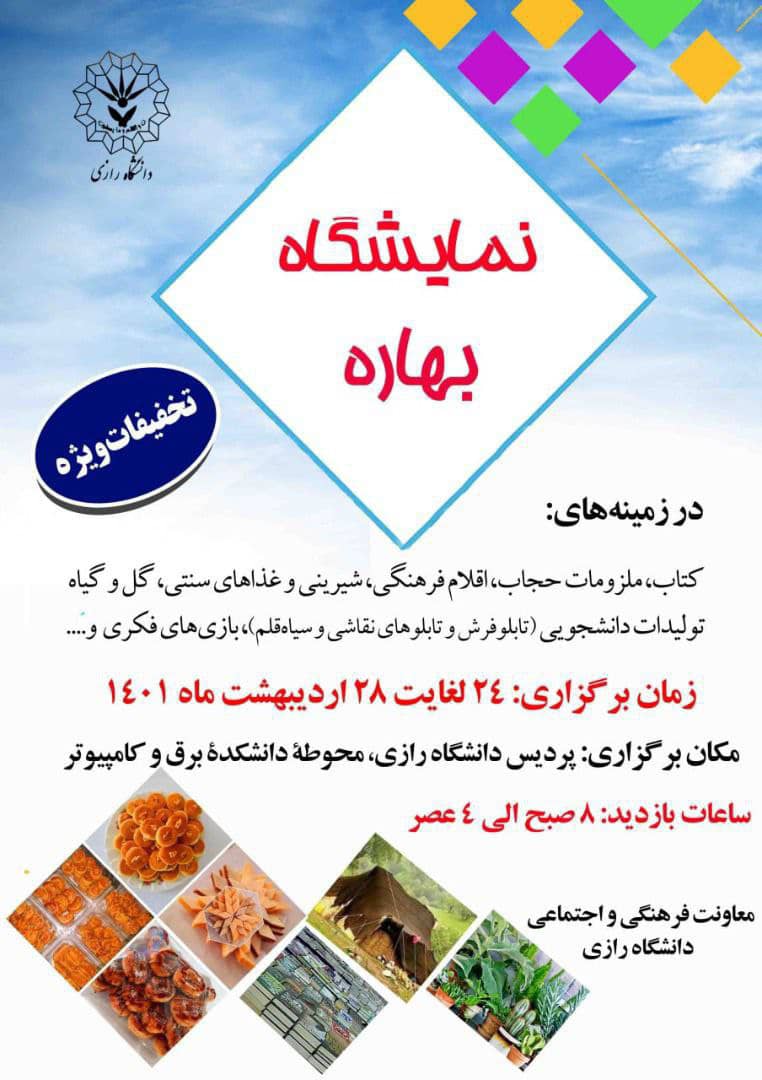 زمان: شنبه ۲۴ اردیبهشت لغایت چهارشنبه ۲۸ اردیبهشت ماه ۱۴۰۱