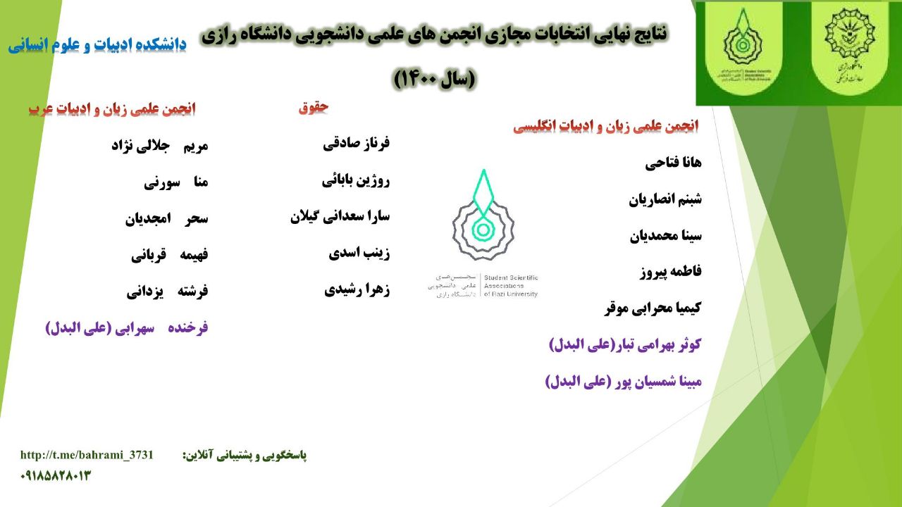نتایج انتخابات شورای مرکزی انجمنهای علمی دانشجویی دانشکدۀ ادبیات و علوم انسانی
