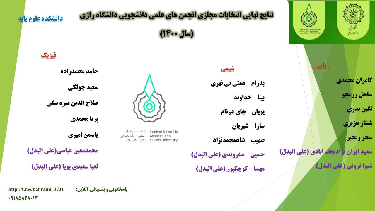 نتایج انتخابات شورای مرکزی انجمنهای علمی دانشجویی دانشکدۀ علوم پایه
