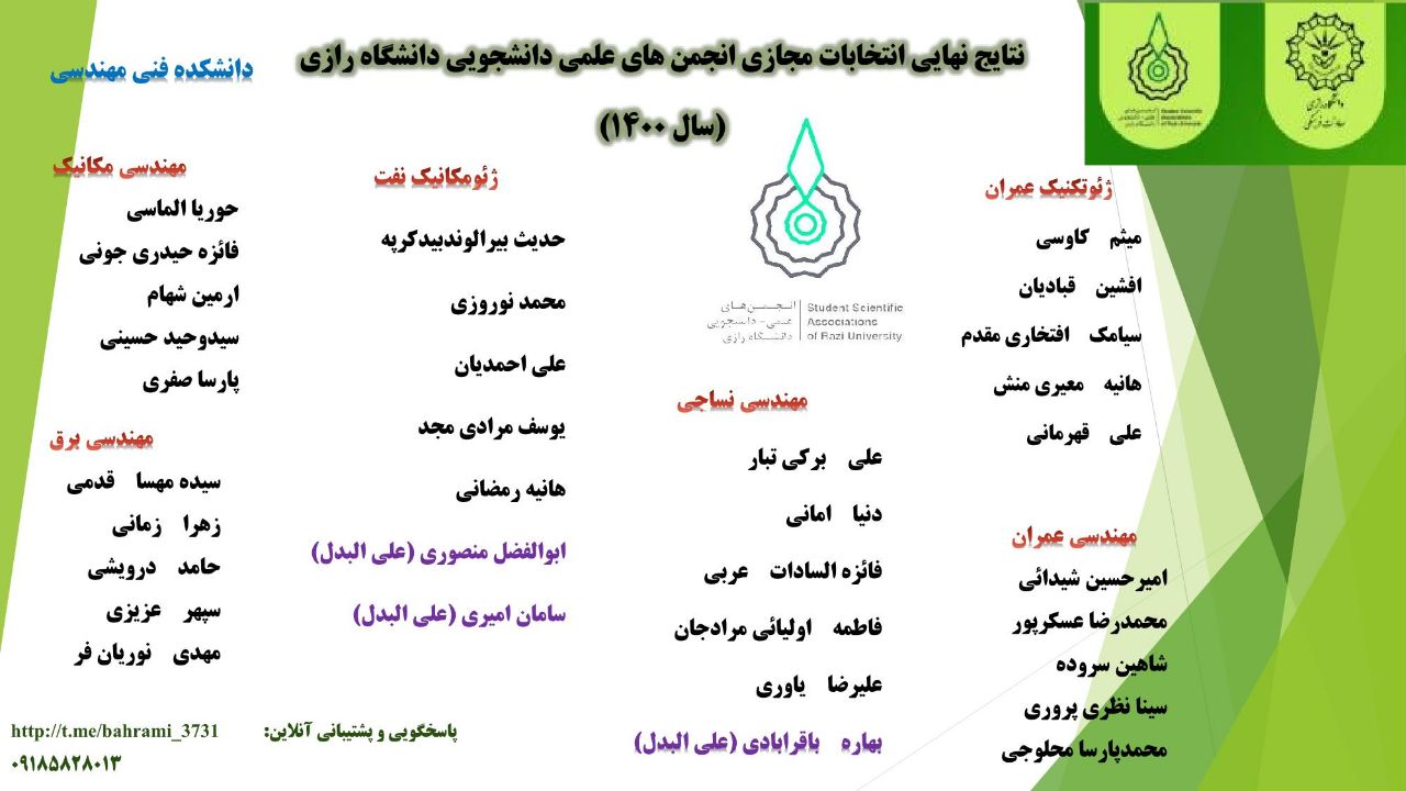 نتایج انتخابات شورای مرکزی انجمنهای علمی دانشجویی دانشکدۀ فنی مهندسی
