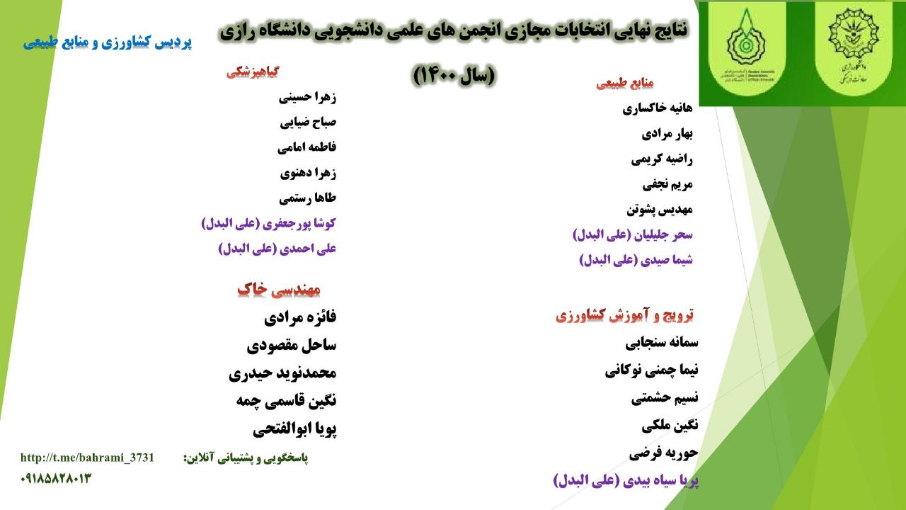 نتایج انتخابات شورای مرکزی انجمنهای علمی دانشجویی پردیس کشاورزی و منابع طبیعی
