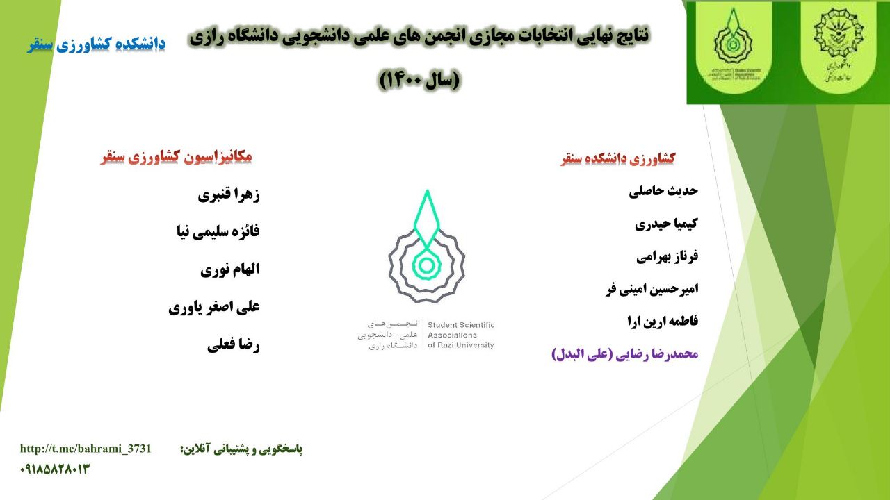 نتایج انتخابات شورای مرکزی انجمنهای علمی دانشجویی دانشکدۀ کشاورزی سنقر